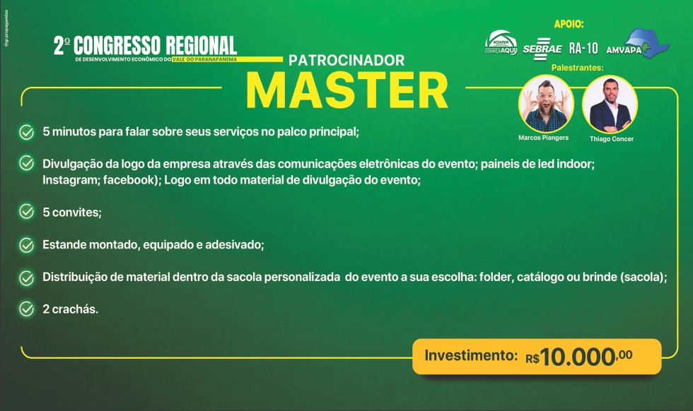 Os maiores empresários da região estarão reunidos no evento, gerando conhecimentos e oportunidades de negocios.