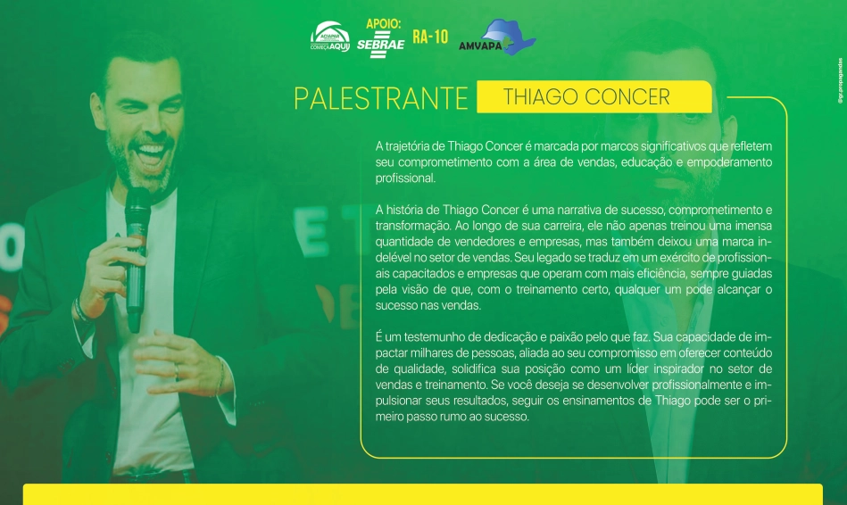 Thiago Concer é Bacharel em Relações Públicas. Possui estudos pela Academia Européia de Negócios em Madri, é Pós-Graduado em Gestão de Comunicação e Marketing pela USP/ São Paulo.